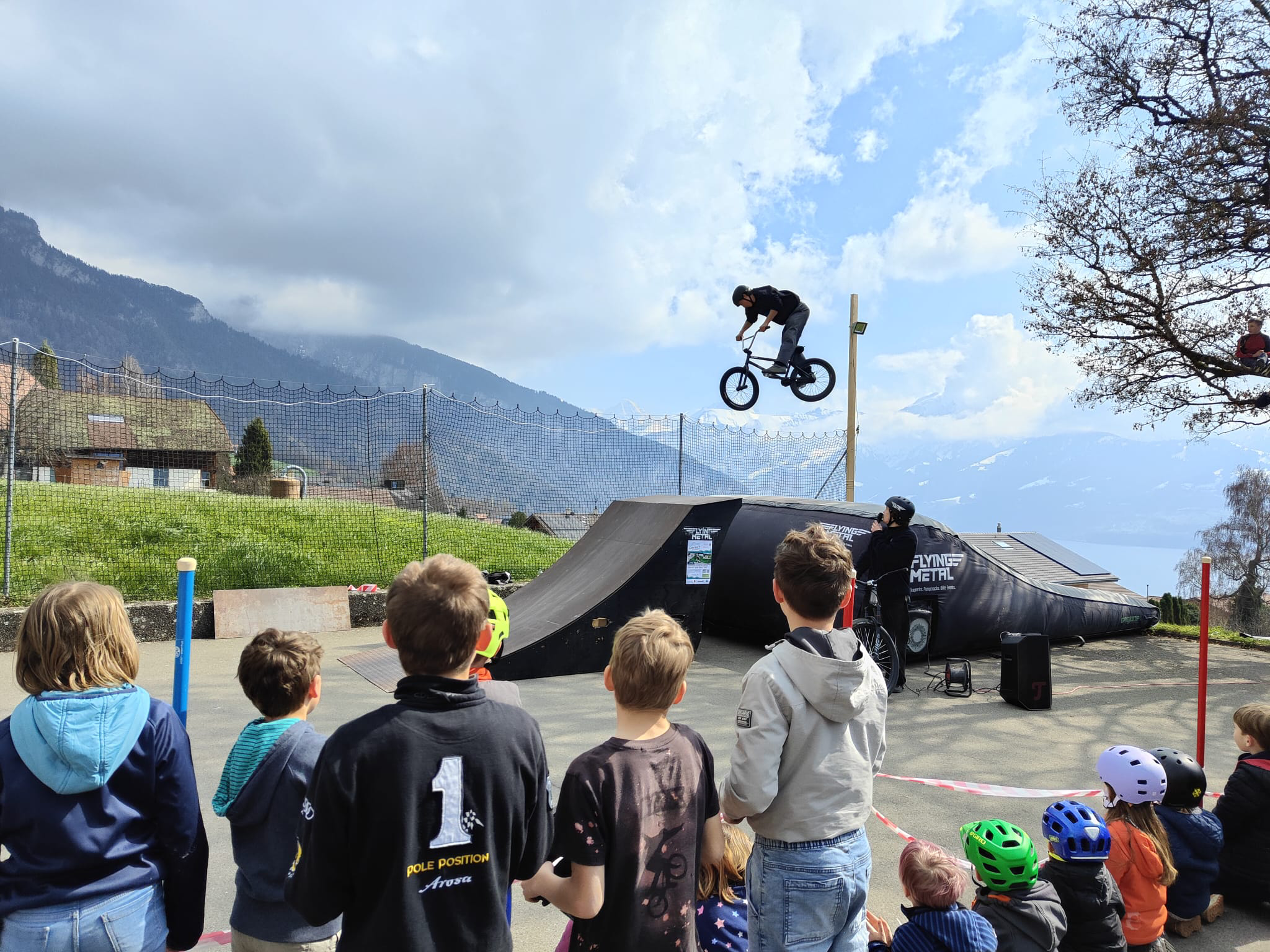 Danach wurde es spektakulär: Die Young Guns von Flying Metal zeigten waghalsige Sprünge aufs Luftkissen und sorgten für staunende Zuschauer. Und für die ganz Mutigen gab es die Chance, unter fachkundiger Aufsicht selbst einen Sprung zu wagen. Insgesamt nahmen über 30 Kinder und Jugendliche an dem Tag teil.